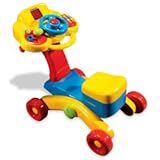 I bought this for my 1 year old baby as his b'day gift.He enjoys the toy and plays with it everyday.I like the flexibility of its music panel to be removed.I took just the panel with me while travelling with him. Also, the toy is not a flimsyone, pretty sturdy.I am happy with the buy.Get more detail about V Tech - 3 - In - 1 Smart Wheels.